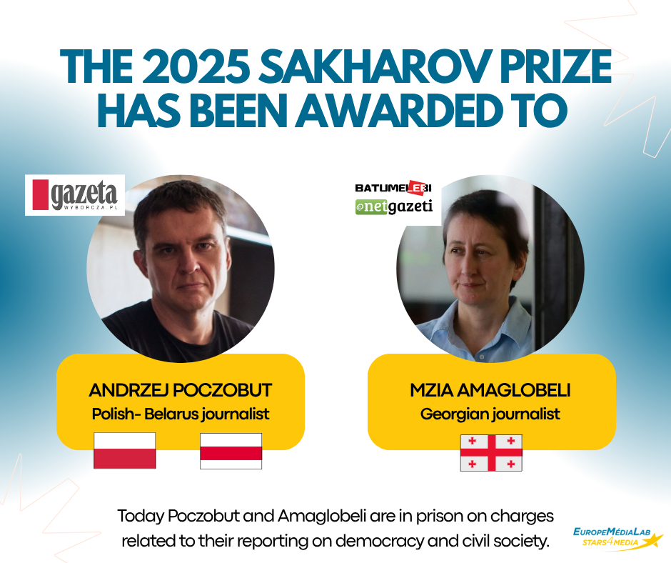On October 22nd, the European Parliament attributed the 2025 Sakharov Prize to two journalists: Andrzej Poczobut and Mzia Amaglobeli. Both are in prison on charges related to their reporting on democracy and civil society. This prize is one of the EU’s highest human rights honours and stands as a powerful symbol of solidarity with those who dare to speak truth to power.